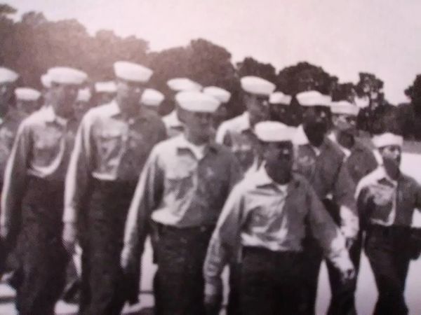This photo was taken during U.S. Navy boot camp. Carlton Walker stands in the center as a section leader, responsible for twelve sailors behind him. His Company 125 later earned the Commanding Officer’s White Flag of Excellence, an honor awarded for discipline, unity, and leadership under extreme pressure.