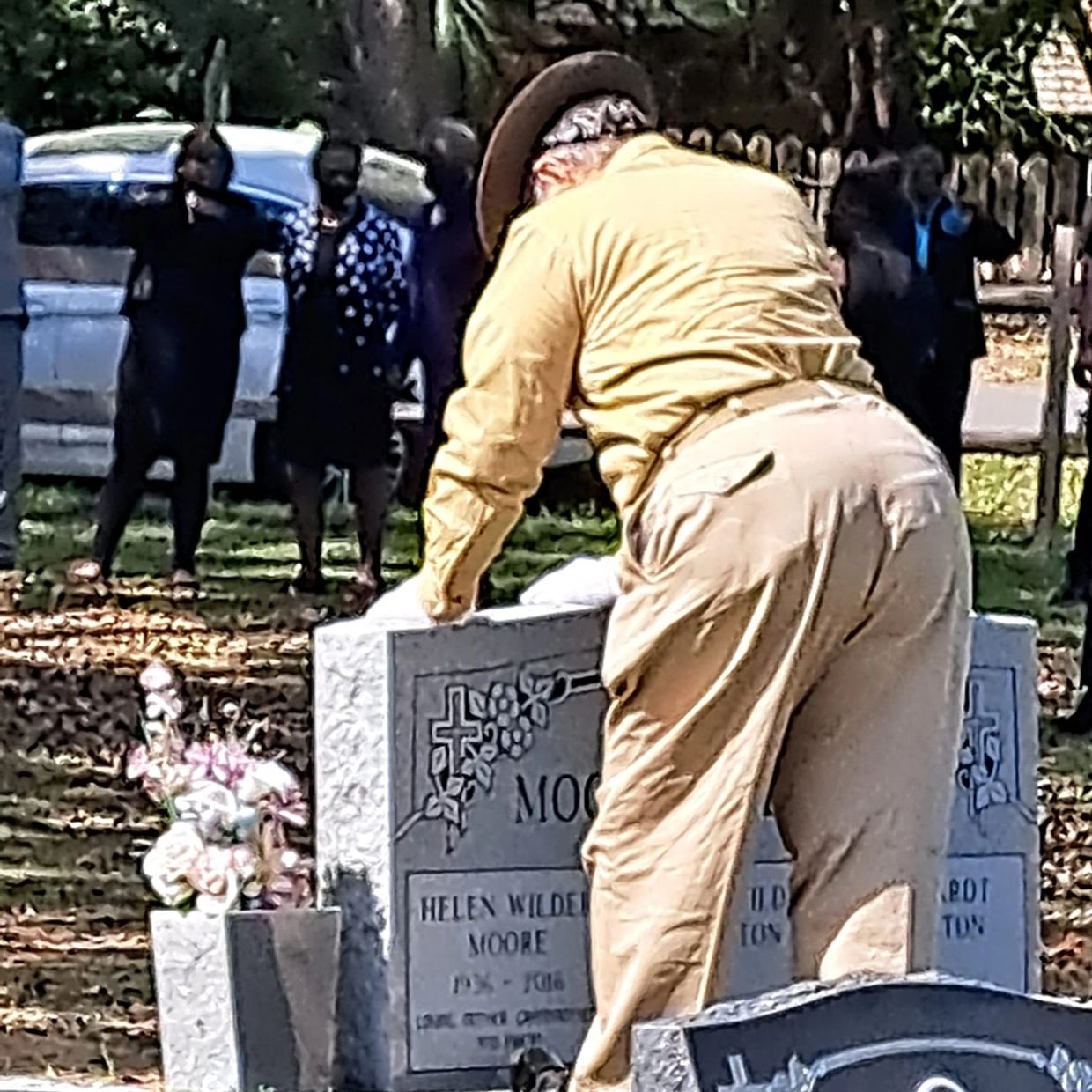 At one point while we were waiting before starting the video, my father leaned against a large headstone, bent over in pain. I stood there watching, worried I might have to walk over and help him. What few people knew in that moment was that he was quietly battling CLL blood cancer, diagnosed in November of 2020, yet he never said a word and never stepped away. The internal struggle he carried that day, both for this community and as an example for me, is indescribable. I am sharing this image so people can understand who my father truly is—the quiet man behind the bugle whose notes bring everyone to tears in full military honor. What most people do not realize is that when a live bugler does not step forward, a recording is often played from a small boombox. I believe our fallen service members deserve better. They deserve a live bugler, standing there in uniform, honoring them with Taps played by human breath, human effort, and real sacrifice.