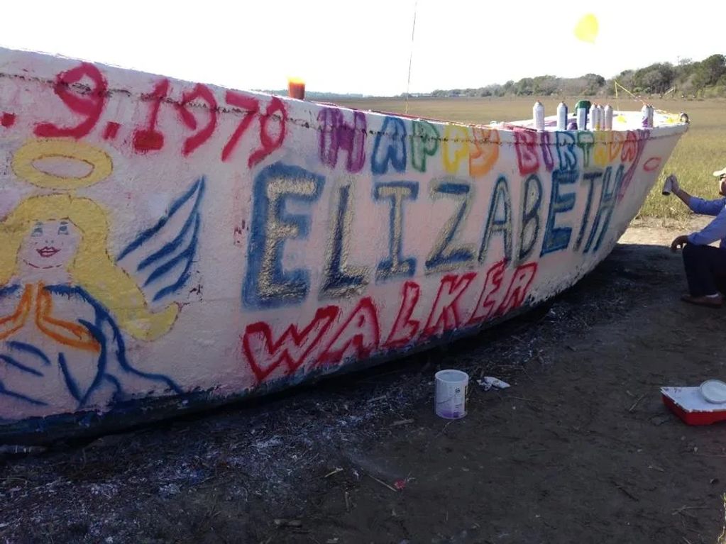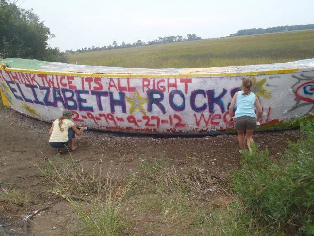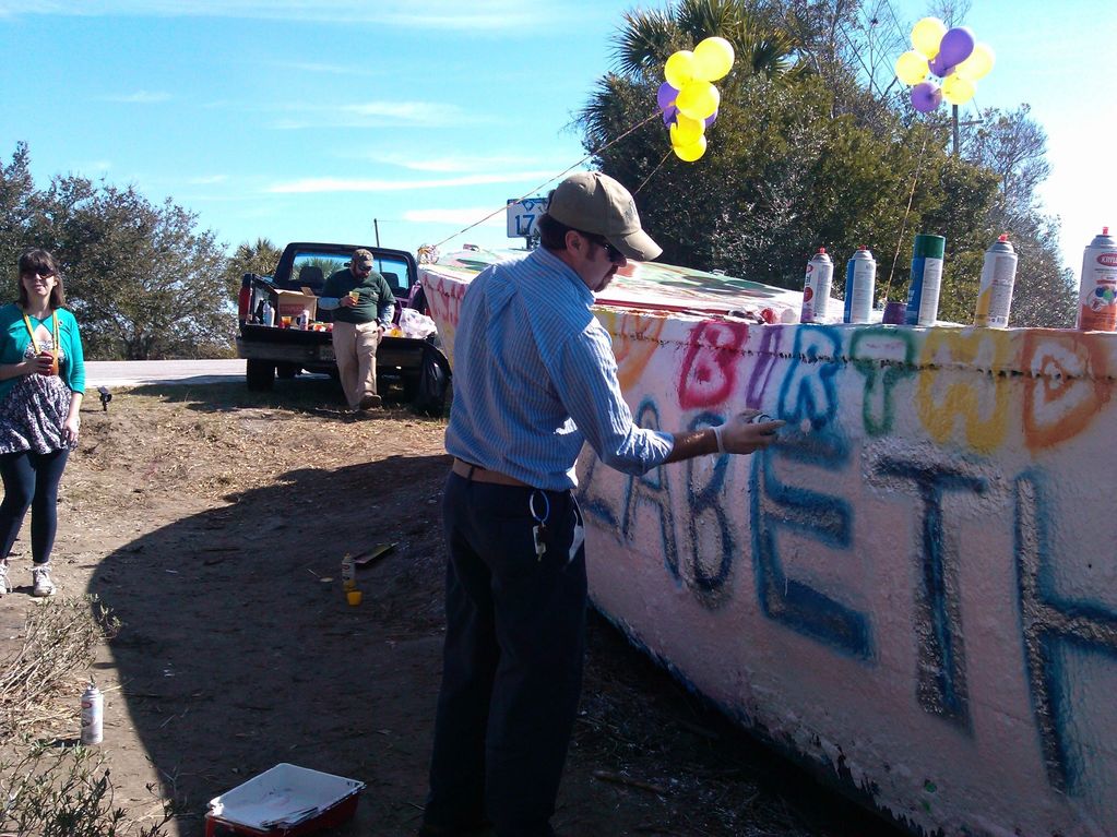 Carlton spray-painted our Folly Beach Boat Memorial for his sister on February 9, 2013, her 33rd birthday, without her.