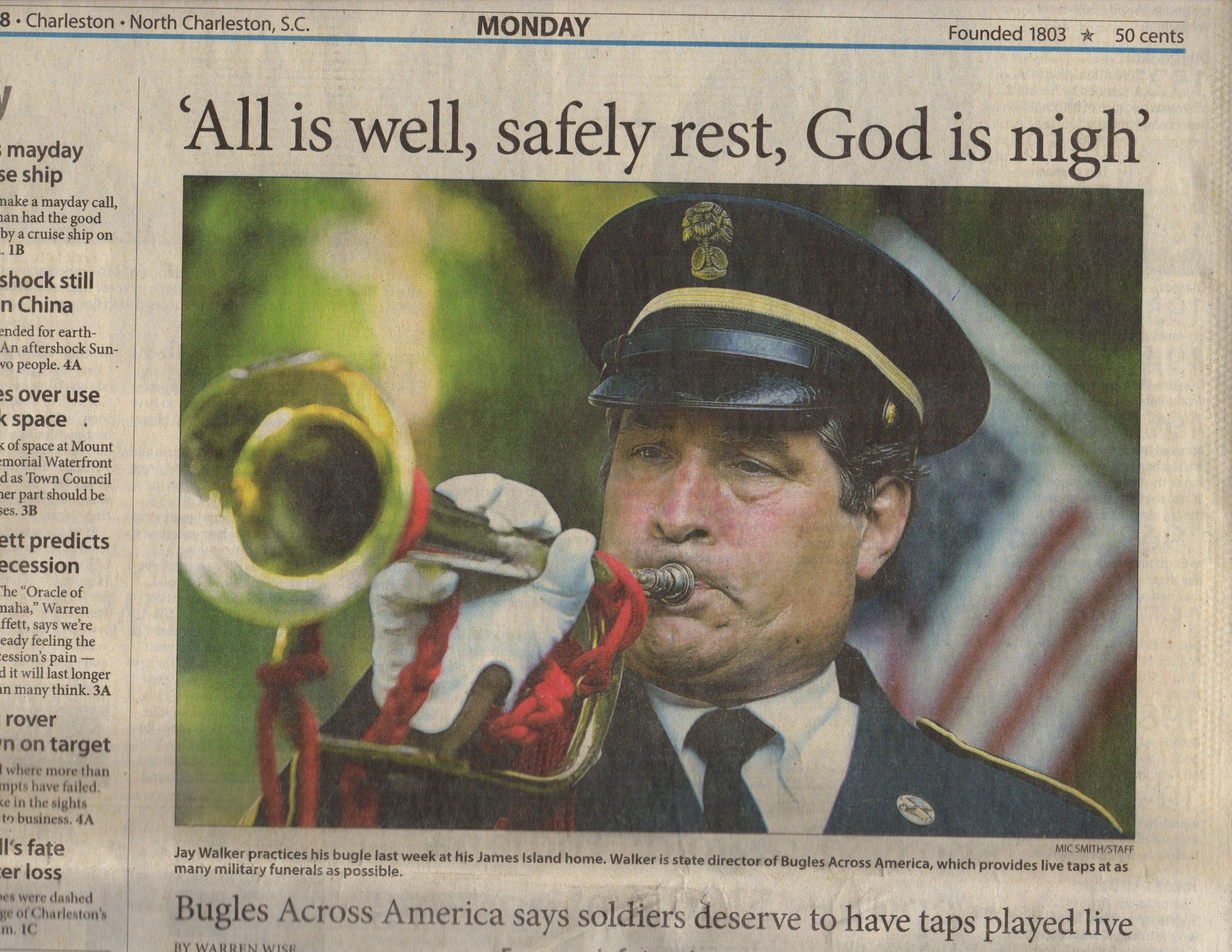 Many people do not realize that when a live bugler is not present, the sound of Taps is often played from a recording through a small speaker. Carlton believes our fallen service members deserve better.